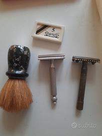 Set da barba vintage Compsto da 2 rasoi di cui a marchio gillette, lamette wilkinson e un pennello da barba