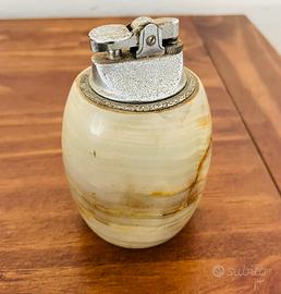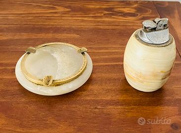 Set da fumo 1960 composto da un accendino da tavolo e un posacenere, entrambi realizzati in onice gli oggetti sono come descritti in foto senza nessun trattamento, l’accendino è funzionante ha bisogno di una lucidata e una pietrina nuova