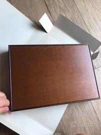Scatola im legno con contenitore sagomato im velluto rosso.