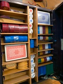 Cofanetto da gioco con carte e fish. Il cofanetto e’ un prodotto artigianale in cuoio, completo di chiave.