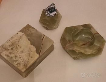 Set da fumo vintage in onice verde e beige bellissimo, un oggetto da collezione tipico degli anni '60/'70.