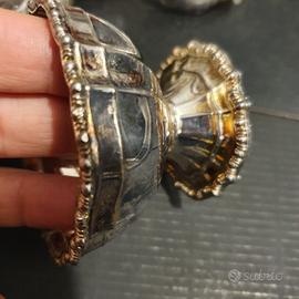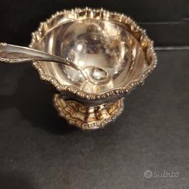 Da eredità, vendo set vintage da tavola in sirverplate Sheratonn, composta da due coppie di portatovaglioli e un contenitore a forma coppa / calice con cucchiaino coordinato