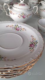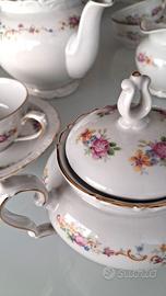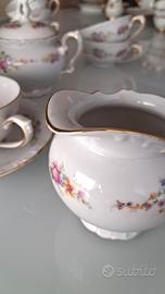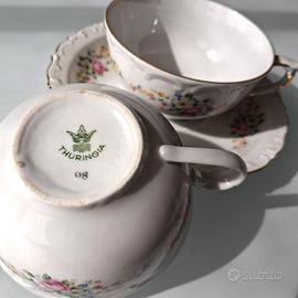 Elegante set da tè in porcellana numerata di Thuringia (Germania), con marchio originale a corona verde.