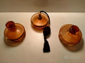 Servizio da TOILETTA anni 40 in ottime condizioni di colore ambra bordato in oro zecchino, spruzzino funzionante.