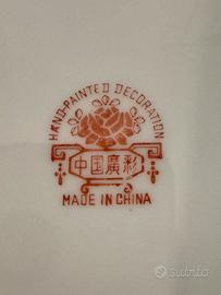 La presenza dei caratteri cinesi "中国廣彩" (Zhōngguó Guǎngcǎi) si riferisce allo stile di porcellana cinese noto come Famiglia Rosa o Canton Enamels, caratterizzato da smalti colorati, spesso con tonalità rosa ottenute da cloruro d'oro.