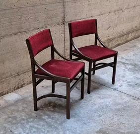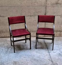 Set di 2 sedie nr. 110 in palissandro e velluto rosso di Ico & Luisa Parisi per Cassina, anni '60.Ico Parisi disegnò la sedia modello 110 nel 1960 per Cassina. Le sedie proposte sono una versione con schienale imbottito di questo modello. La struttura è in palissandro.Rivestite in un tessuto di velluto rosso .