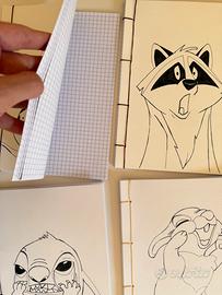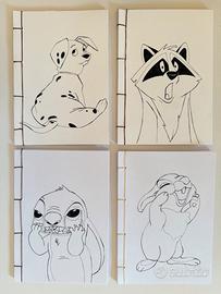 Set di 4 quaderni a5 tema disney Realizzati con carta d’acquerello 2 contengono fogli a quadri, 2 fogli bianchi