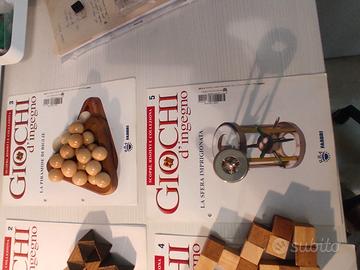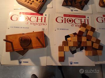 Set di 6 giochi e rompicapo della Fabbri in legno e metallo.