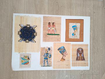Set di 7 papiri originali dipinti a mano con scene e figure egizie.