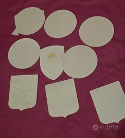 Set di adesivi delle Forze Armate Italiane, raffiguranti diversi gruppi e stormi. - Adesivo 14° Gruppo con papero e cappello da strega. - Adesivo 84° Gruppo con papero su canoa. - Adesivo 103° Gruppo C.B.R. Davide. - Adesivo Associazione Arma Aeronautica con aquile. - Adesivo Gruppo MAC/SOG con teschio. - Adesivo 50° Gruppo con aquila nera. - Adesivo 32° Stormo con aquila. - Adesivo 20° Gruppo con leone. - Adesivo 50° Stormo con spada e ali. buono stato di conservazione,potrebbero presentare piccoli segneti dovuto al amneggio!