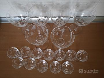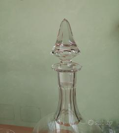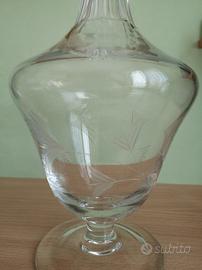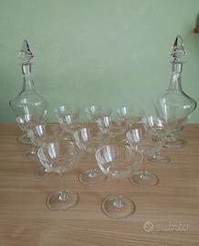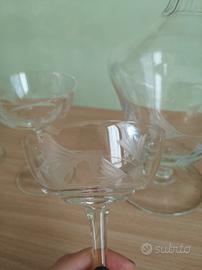 Set di 12 calici, 2 caraffe, 6 bicchieri e 12 bicchierini con motivo a foglie, in cristallo vintage. In perfette condizioni