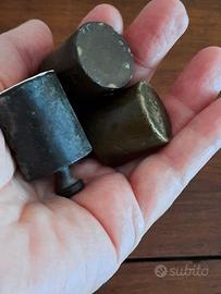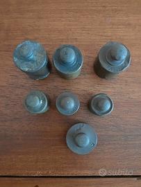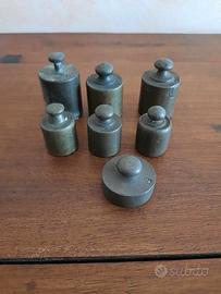 Set di 7 piccoli pesi di vecchia bilancia. I 3 grandi sono da 125/100 grammi; gli altri 4 sono da 50 grammi. In ottimo stato, con patina del tempo più evidente in uno dei grandi.
