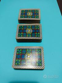 Il retro delle carte presenta un motivo scozzese (tartan) prevalentemente rosso, blu e verde.