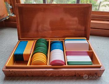 Favolososet di 96 fiches da poker in scatola di legno noce ricoperta in pelle. Stato di conservazione: ottimo Pagamento: bonifico, TUTTOSUBITO