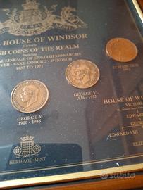 set di 5 monete in teca di vetro coniate dalla Royal Hause of Windsor 1837- 1952 in buone condizioni