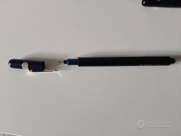 Penna a punta sintetica indeformabile con inchiostro a base dacqua. Clip in acciaio inox. Scrittura sottile. Fusto tondo in colori metallizzati. Tratto 0,3mm.