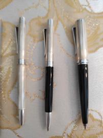 Una mini penna sfera in argento 925 macchiato e due mini matite con cappuccio in argento 925 di cui uno macchiato. Una penna a sfera Stradivarius più due penne a sfera. Non vendo singolarmente. Prezzo 60€