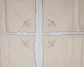Set di quattro tovagliette in lino di alta qualità italiane, finemente ricamate a mano con un delicato motivo floreale.