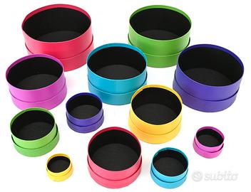 N.12 scatoline con coperchio in cartone colorate Ikea. Diverse misure a scalare.