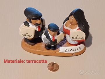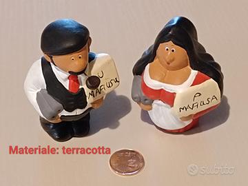 Tre statuette in terracotta di Caltagirone e due in resina. Il materiale usato è scritto sulle foto