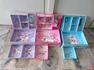 - 3 portagioie per gioielli e bigiotteria, completi di vano con scomparti due cassetti.