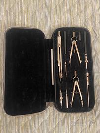 -set 3 compassi in custodia d’epoca (leggermente usurata complice il tempo trascorso) con kit completo interno