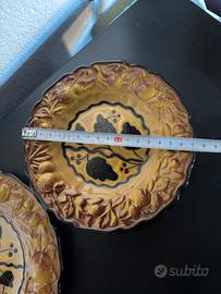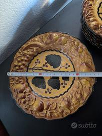 Set da dolce 6 piatti piccoli più uno grande. Decorazioni in rilievo foglie e bacche.