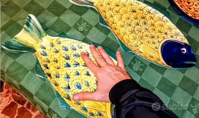 Set due piatti da portata a forma di pesce dipinti a mano firmati Villa d Este