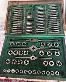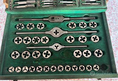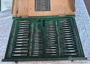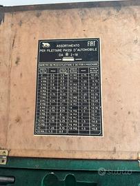 In vendita un rarissimo Assortimento per filettare passi d'automobile, marcato FIAT e prodotto da UTIT & F (storica Utensileria Italiana Torino). Pezzo da collezione storico di altissimo valore, con cassa in legno massello e targa delle specifiche originali (Passi d'automobile da 2 a 18 mm). Il set, composto da due vassoi, è sostanzialmente completo con una vasta gamma di maschi e filiere. Utensili in Acciaio da Utensili d'epoca. NOTA IMPORTANTE SULLE CONDIZIONI: 1. Il set è in ottime condizioni vintage per l'età, con normali segni d'uso. 2.Potrebbe mancare un numero limitato di particolari.Ideale per collezionisti, musei del settore auto d'epoca o restauratori che necessitano dei passi originali FIAT.