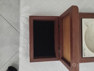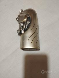 set fumo vintage OTTAVIANI composto da posacenere in legno e rivestito in arg 925 mill cm 13,5 x 13,5 H cm 4 + scatola in legno e rivestita in arg 925 mill cm 11,5 x 7,5 H cm 4 + accendino da tavolo tutto rivestito in arg 800 mill H cm 14,5 D cm 6 raffigurante la testa di un cavallo usato ma in ottime condizioni spedizione postale previo bonifico bancario anticipato o consegna a mano il prezzo tiene conto di qualche alone giallo sull'accendino dovuto al tempo e non è trattabile ASTENERSI PERDITEMPO