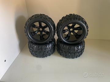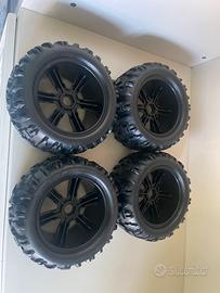 Vendo set di 4 gomme complete di cerchio, per 1/8 off-road Savage HPI, ottime anche su Monstertruck, Truggy e Buggy di altre marche.