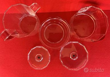 Set Guzzini anni 80 porta marmellata nuovi mai usato con scatola originale con qualche segno del tempo ( la scatola) sono con vassoio e due ciotoline con cucchiaini, designer Giugiaro mod. Orient Express….caraffa più secchiello ghiaccio mod. Zodiaco designer Ambrogio Pozzi normali segni del tempo su pexiglass vedi foto, un buon conservato….senza pinza…..misura caraffa h. 23 cm. Diametro 12 cm. H. S. Ghiaccio 14 cm. Diametro 16 cm. Ciotolina diametro 11 cm. H. 6 cm. Trasparente + blu cobalto vedi foto, vedi bene le foto ti arrivano quelle in foto……porta g. 45 euro caraffa 45 euro porta marmellata 45 euro presi tutti e tre insieme 100 euro