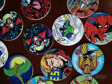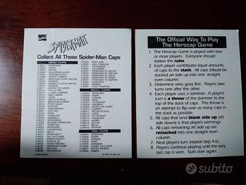 Set Herocap Game, con 35 Spider caps e 6 segnalini giocatore, gadget Marvel Comics, anno 1994 Uomo Ragno