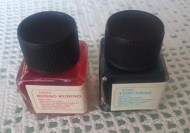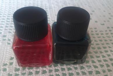 Composto da 2 boccette inchiostro rosso rubino e turchese + pennino con porta pennino.
