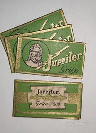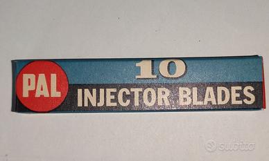 Vendo set di lametta per rasoio vintage Un iniettore con 10 lamette Pal made in Grea Britain 1 pacchetto da 10 lamette Tre Teste Argento ancora con il suo cellophane 1 pacchetto da 5 lamette Tre Teste Amaranto 2 lamette Jeppiter Gold 4 lamette Jeppiter Grün il tutto 50 euro