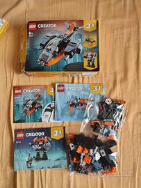 Set lego creator 3 in 2 nuovi Lego 31092 avventure in elicottero Lego 31111 Cyber-drone 113 pezzi Lego 31124 super robot Tutte le scatole sono aperte ma con sacchettini sigillati come da foto