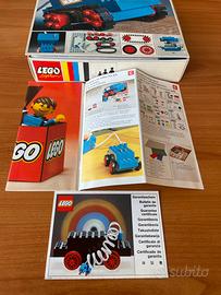 Set originale LEGO System 103 con motore elettrico 4,5 Volt, prodotto nei primi anni ’70, completo di scatola e istruzioni originali. Si tratta della versione con motore nero e base nera, una delle varianti classiche della serie LEGO System dedicate alla motorizzazione dei modelli. Il set si presenta in condizioni ottime considerando l’età, con normali e lievi segni del tempo. Istruzioni in condizioni perfette. La scatola originale leggermente usurata è presente insieme al vassoio interno in polistirolo, al libretto di istruzioni, al certificato di garanzia e al leaflet/catalogo LEGO dell’epoca. Tutti i componenti sono originali LEGO e il set risulta completo. Questo motore 4.5V era progettato per aggiungere movimento a veicoli e costruzioni LEGO System degli anni ’70, ed è oggi un articolo interessante sia per collezionisti sia per appassionati del LEGO Le batterie non sono incluse.