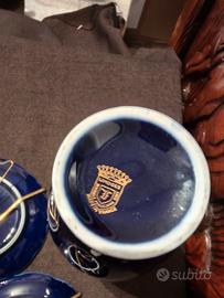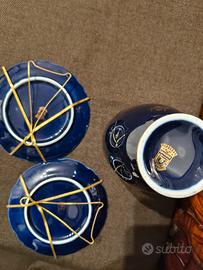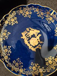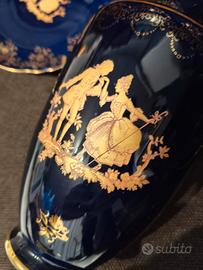set tre pezzi limoges originali vintage. colore blu con decori oro i due piattni hanno il loro supporto perfettamente conservati. articoli anni 60.