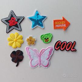 Set, Lotto 50 toppe patches miste, vari soggetti, adatti per bambini, giochi, per vestito da incollare o cucire