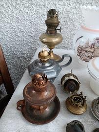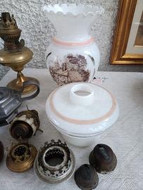 (porta stoppini ecc.) più due vetri decorati per comporre una lucerna