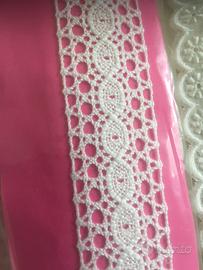 2 matassine di pizzo tipo tombolo colore bianco x un totale mt 10 altezza cm.3 .
