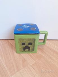 2) Tazza in ceramica Oreo, a tema Creeper, verde a forma squadrata con coperchio blu; capienza 285 ml.