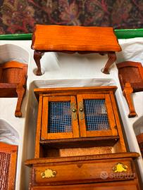 Set in scala di mobili in legno in miniatura casa delle bambole arredi salotto sedia tavolo vintage hanno oltre 30 anni!