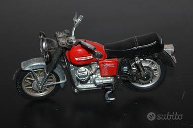 Moto Guzzi V7 Special, realizzato dall'azienda italiana Polistil in scala 1:15. Prodotto in Italia, questo modellino è lungo circa 15 cm e cattura fedelmente lo stile iconico della Moto Guzzi.