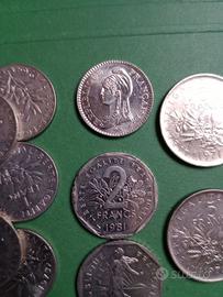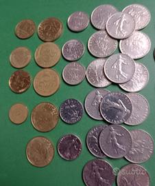 Lotto di 39 pezzi - monete franchi francesi da 10, 5, 2 , 1 e altre monete in centesimi - come da foto - monete circolate