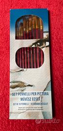 Nuovi, mai usati in confezione originale. Setole in nylon di qualità elevata , ghiera in alluminio lucida, manico rosso lungo (23 cm). 3 tondi, 3 piatti, 4 a lingua di gatto
