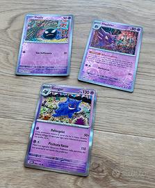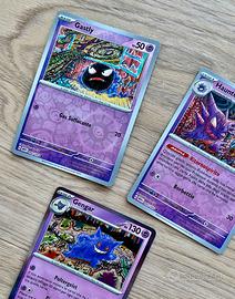 Set di n. 3 carte Pokemon originali - Gastly 092/165 - 151 - Haunter 093/165 - 151 - Gengar 094/165 - 151 Lingua italiana! Solo scambio a mano Pinerolo (e paesi vicini) o Torino Sud