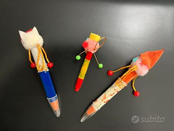set di simpatiche penne a sfera con soggetti assortiti (gattina, king, clown)