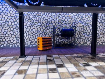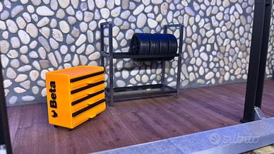 Insieme ad una cassetta attrezzi apribile della beta e uno scaffale per gomme, (gomme non include)