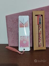 Elegante set regalo con segnalibro e penna decorati in stile giapponese, perfetto per ogni occasione.